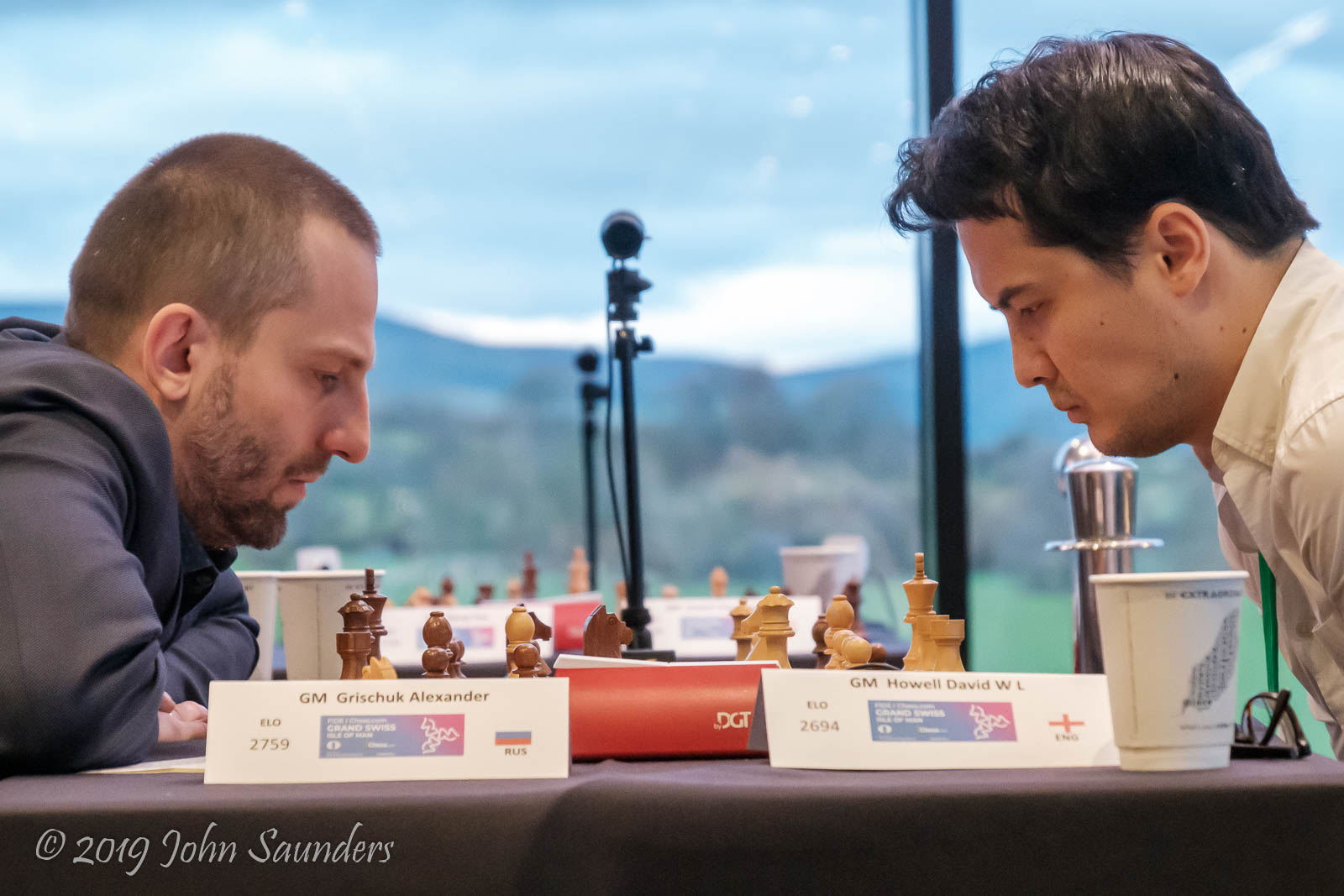 David Howell and Alexander Grischuk go head to head in a bruising encounter (photo: John Saunders)