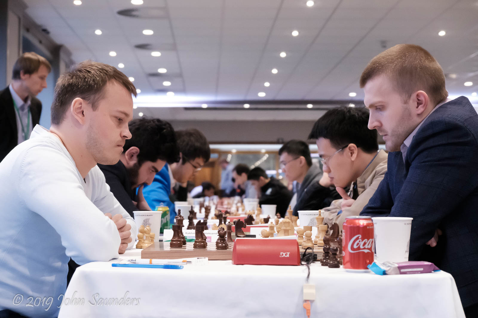 Nikita Vitiugov and Aleksandr Rakhmanov followed Bogoljubow-Alekhine for a while but Vitiugov crashed through to win (photo: John Saunders)