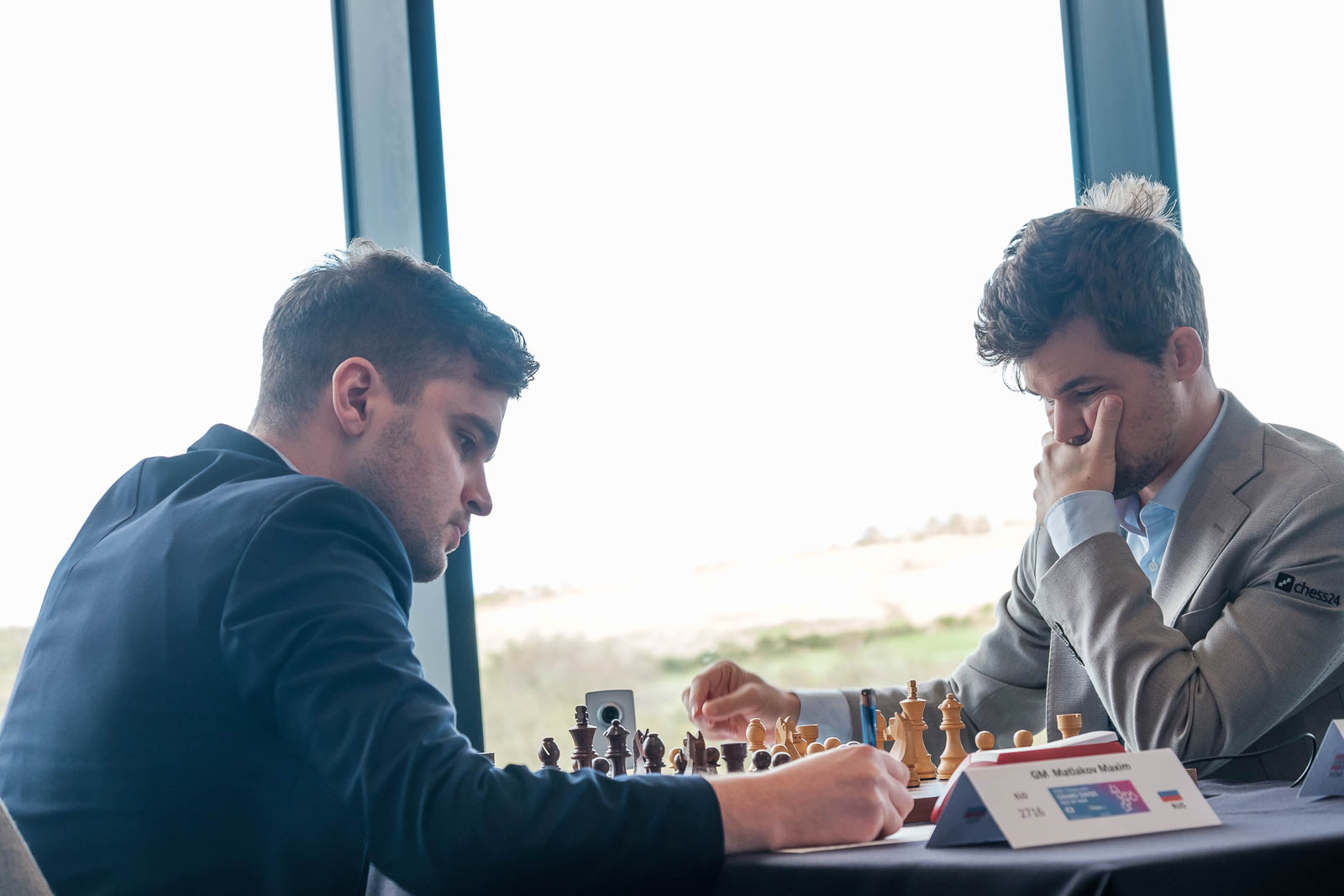 Magnus Carlsen made heavy weather of his game with Maxim Matlakov but he eventually got the point (photo: John Saunders)